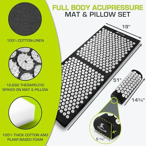FITTED SUPPORT: The cushioned foam mat covers the length of your back and the foam pillow supports your neck to provide back and neck relief; Remove thick clothing for better pressure point contact
