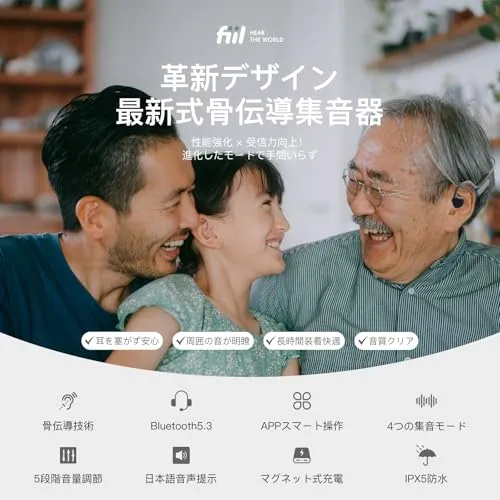 FIIL 集音器 骨伝導 高齢者 音声拡大/BT5.3音楽再生機器 【4種類モード&5段階音量調節】 耳を塞がない 騒音を軽減 簡単操作 室内外兼用 父の日/母の日/敬老の日【寄り添いケア、心温まるアイテム】/