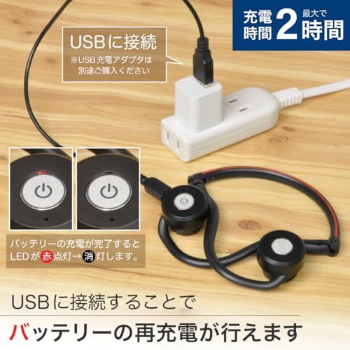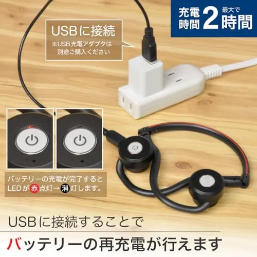 かんたん充電:充電は付属の充電ケーブルを本体に接続するだけ、一度の充電で12時間動作します。(環境や設定音量で前後します)