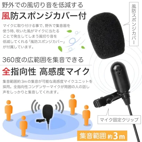 かんたん操作:電源ボタンを押すだけで、そのまま骨伝導集音器として使えます。複雑な操作は一切不要。高感度集音マイクを胸元などに取り付けるだけのかんたん操作です。