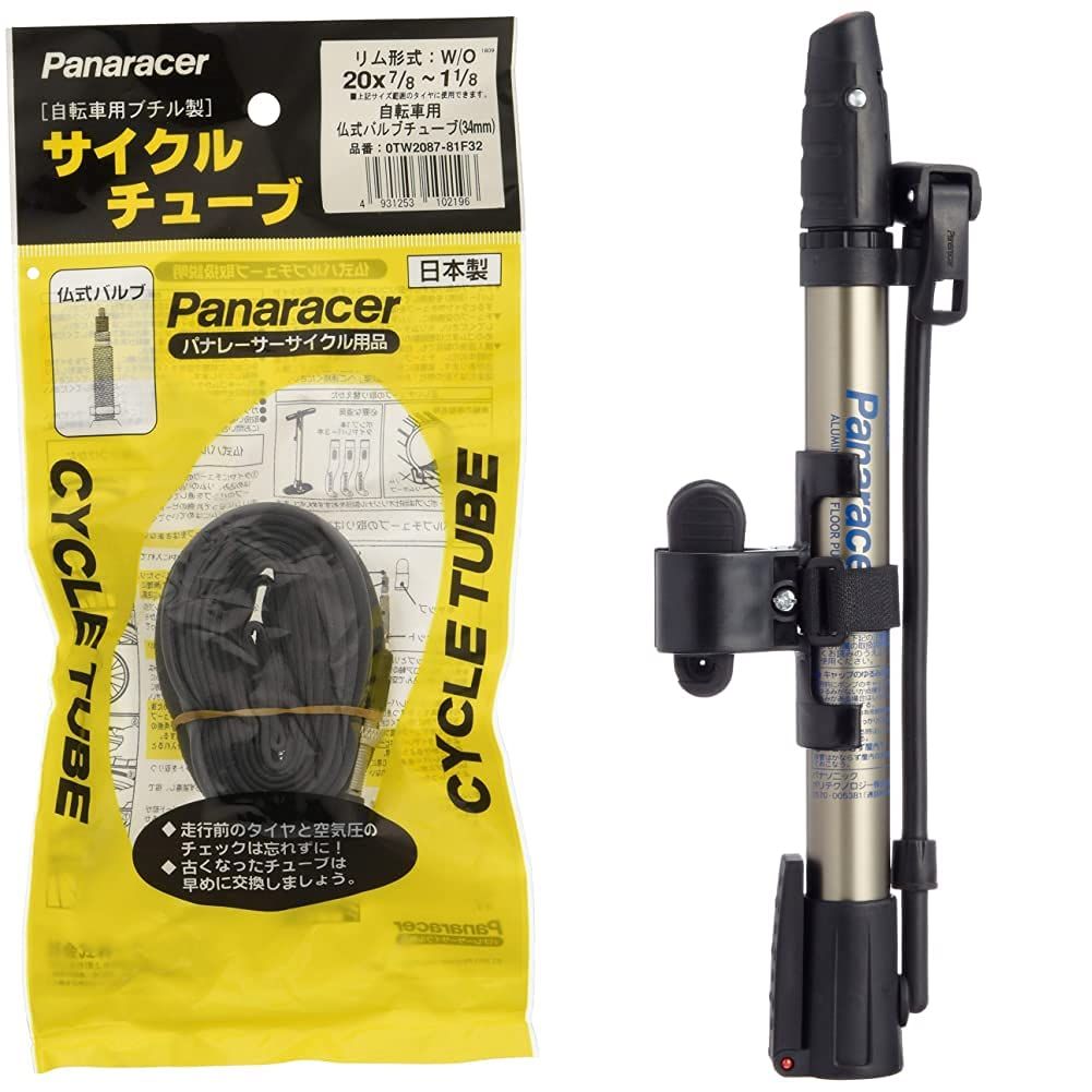 新品 [セット]パナレーサー(Panaracer) 日本製 チューブ [W/O 20x7/8~1 1/8] 仏式バルブ(34mm) 0TW2087-81F32 & 携帯空気入れ ミニフロアポンプ BFP-AMAS1 仏式/米式/英式バルブ対応 フットステップ装