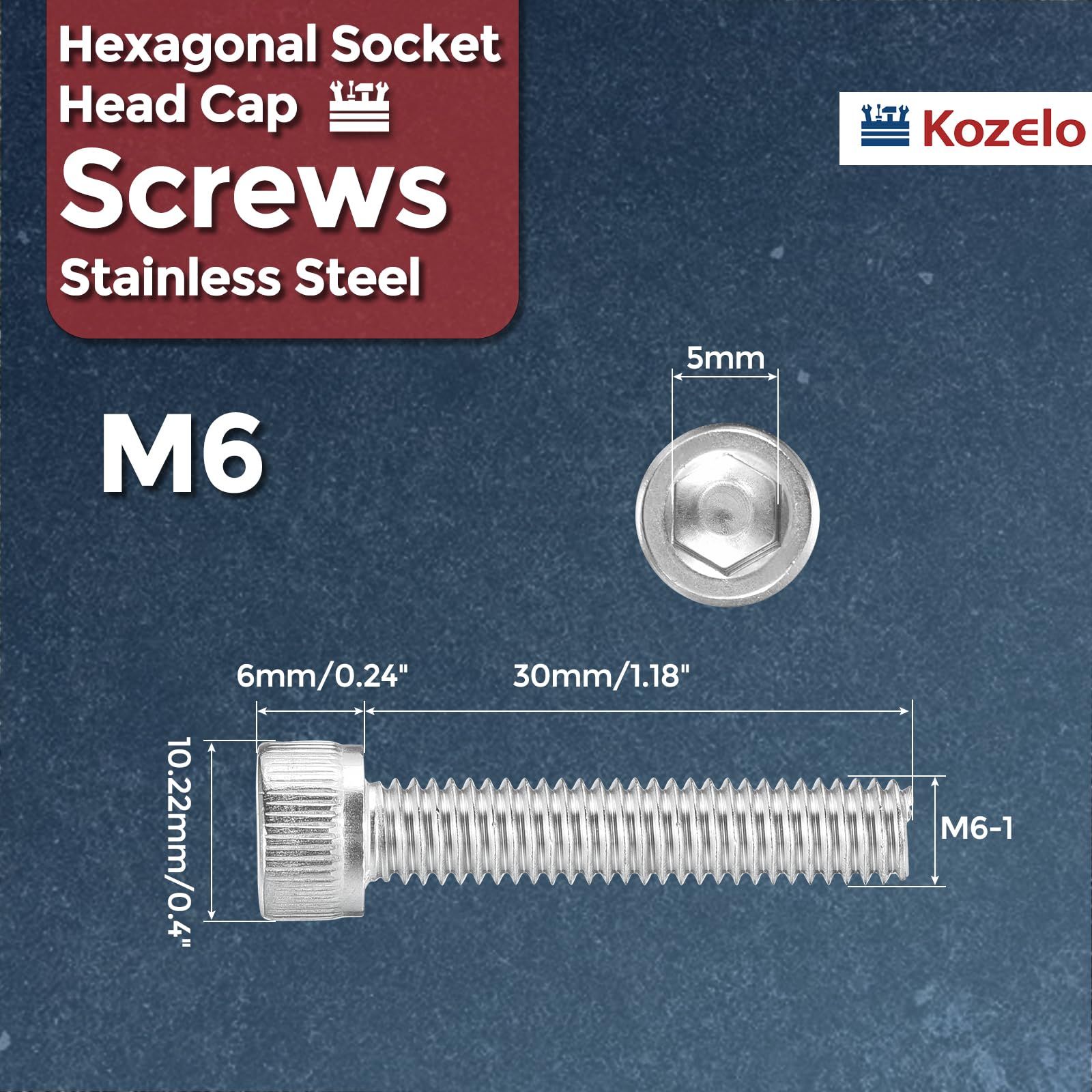 新品 Kozelo 30本 キャップボルト キャップスクリュー [M6-1 x 30mm] 六角穴付きボルト 304ステンレススチール製全ねじ六角ソケットドライブ 電気モーター3Dプリントファンエンジン交換用 シルバー