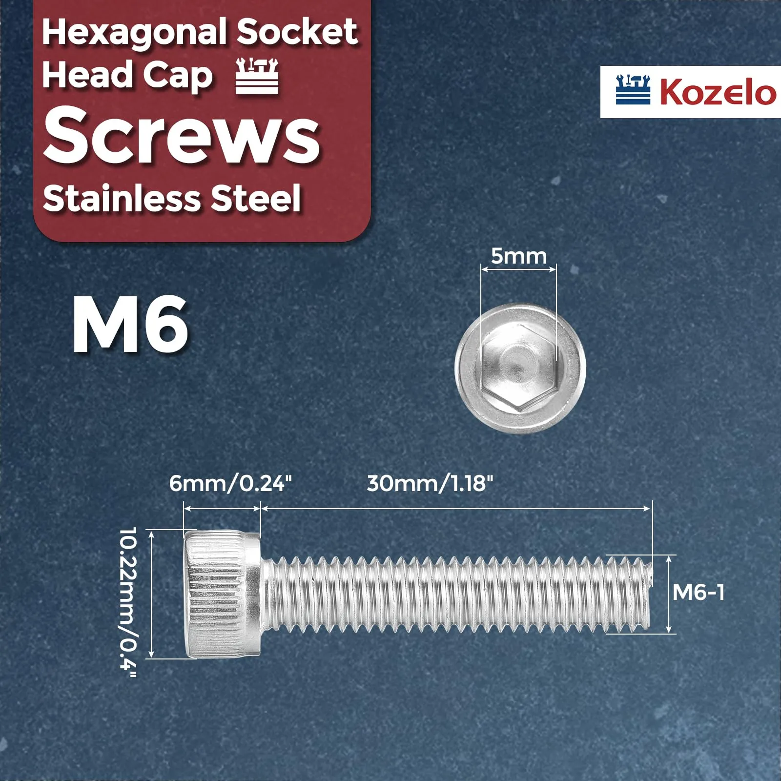 1- パッケージ内容 - 六角ソケットヘッドキャップネジ 30 個、ネジサイズ: M6-1、ネジ長さ: 30mm/1.18 インチ、ヘッド直径: 10.22mm/0.4 インチ、ヘッド厚さ: 6mm/0.24 インチ、六角幅: 5mm。幅広い産業および商業用途に使用できる、多用途で信頼性の高い選択肢です。