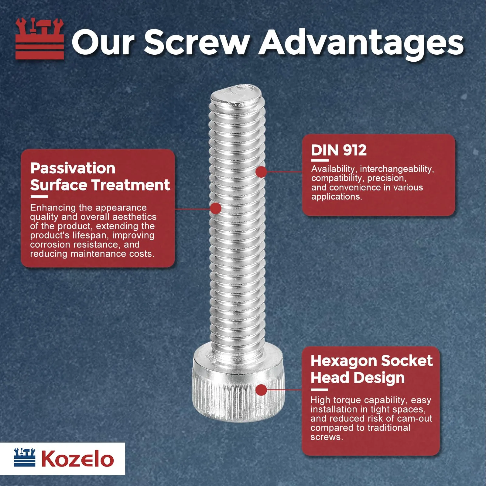 4- 用途 - 機械部品を固定および接続して安定した動作を確保します。これらのネジは、機械、装置、およびツールを組み立て、構造的完全性を維持するために不可欠です。さらに、機械部品の位置を調整したり、装置の精度と機能を維持するためのメンテナンス作業を実行するために使用されます。