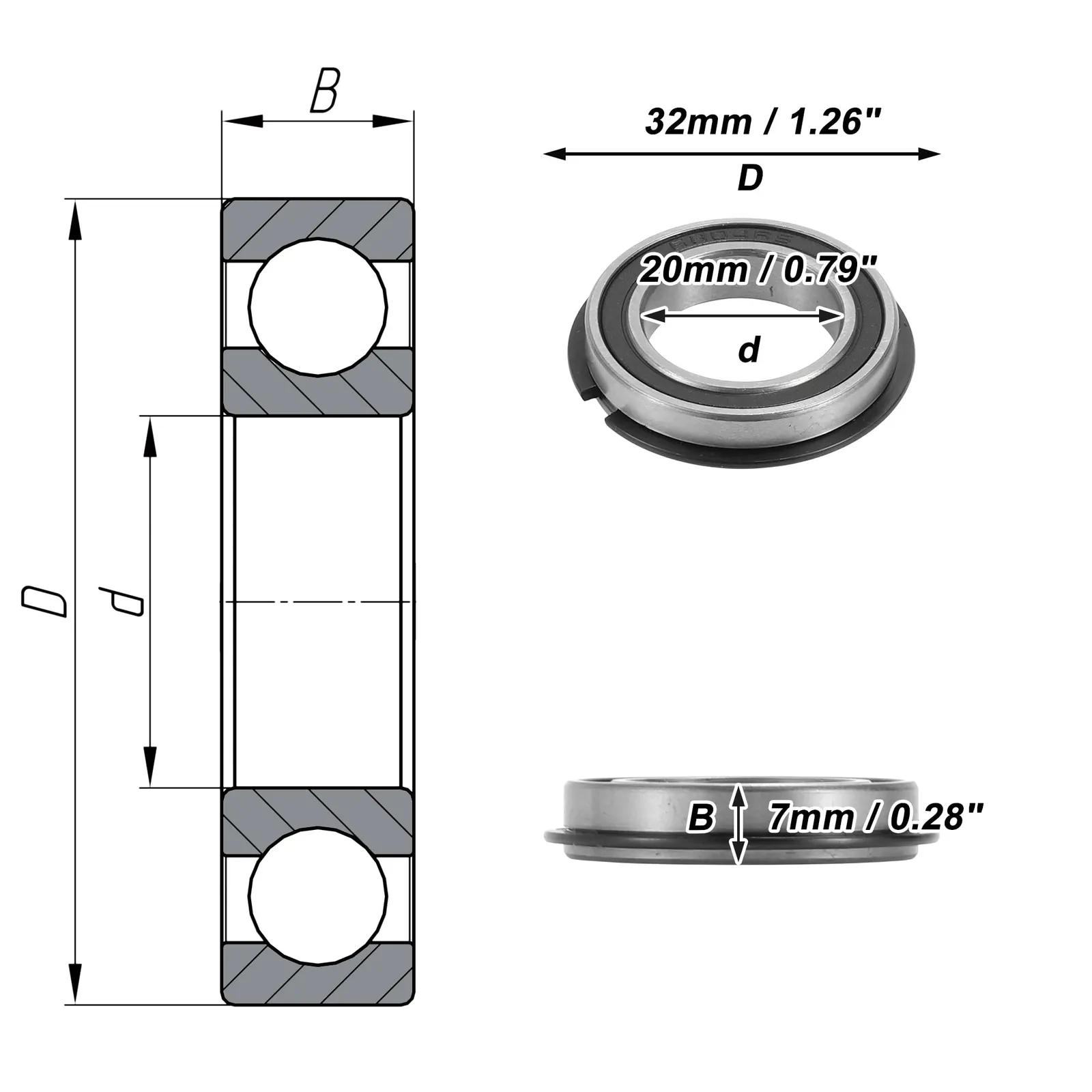 仕様: 外径: 32mm / 1.26、内径: 20mm / 0.79、幅: 7mm / 0.28、タイプ: 6804NR 2RS、精度レベル: P0、基本荷重評価 (kN): Cr: 4 C0r:2.47、限界速度(min-1): 26000