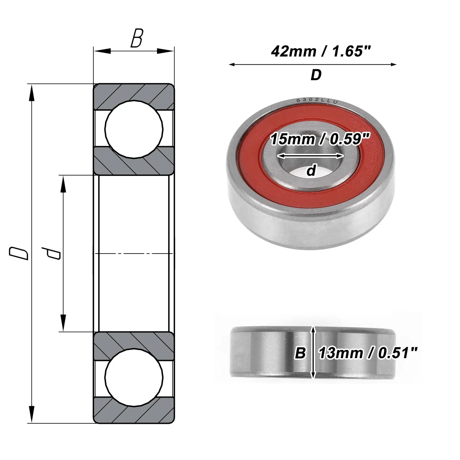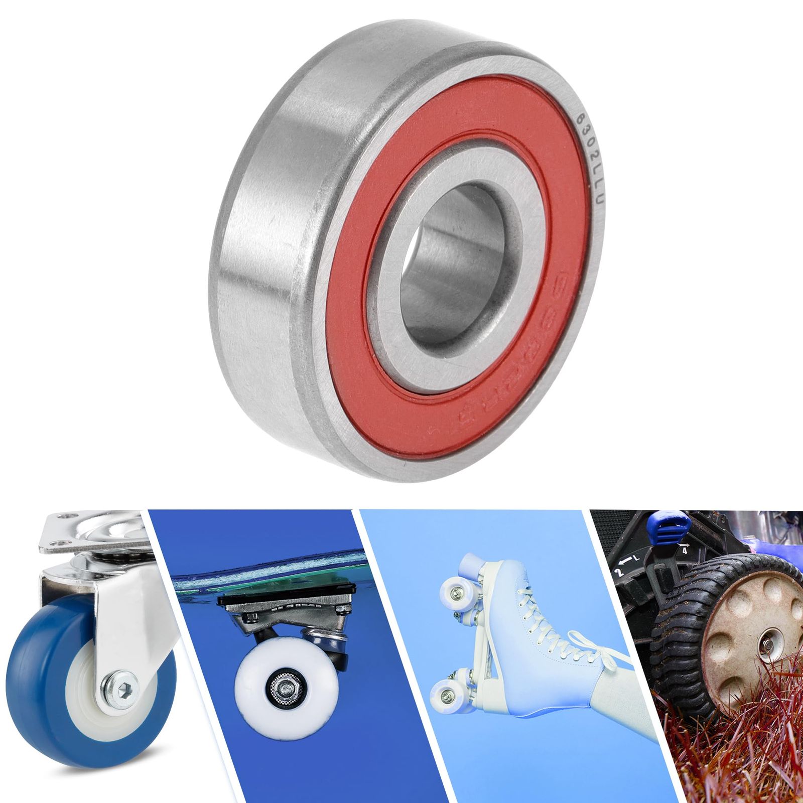 新品 ACROPIX ベアリング 6302LLU ボールベアリング ダブルシール 15x42x13 mm レッド シルバートーン 深溝玉軸受 2個入り