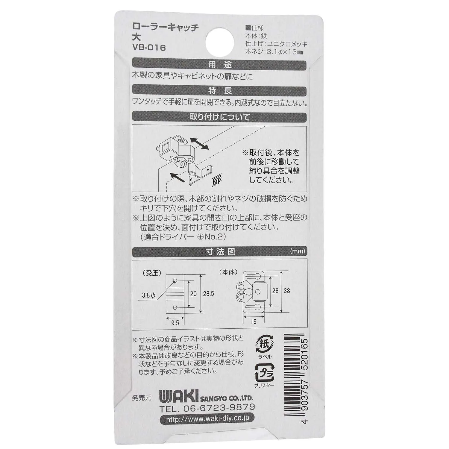 新品 和気産業(Waki Sangyo) ローラーキャッチ ユニクロメッキ 木製家具 キャビネット ワンタッチ開閉 大 VB-016
