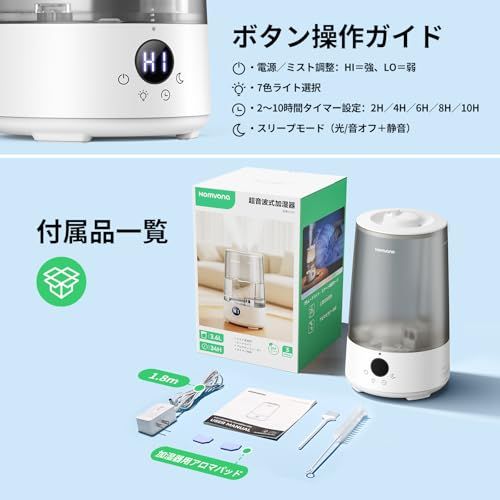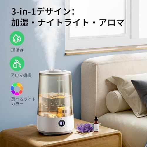 Homvana (ホムバナ) 加湿器 アロマ -【2025新登場3-in-1・16dB設計】3.6L 上から給水 ダブル吹出口, 大容量 節電 25時間連続稼働 18畳まで対応 空焚き防止 寝室 卓上 おしゃれ 7色LEDライト アロマディフューザー 超音波/