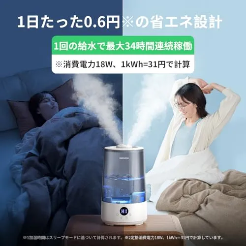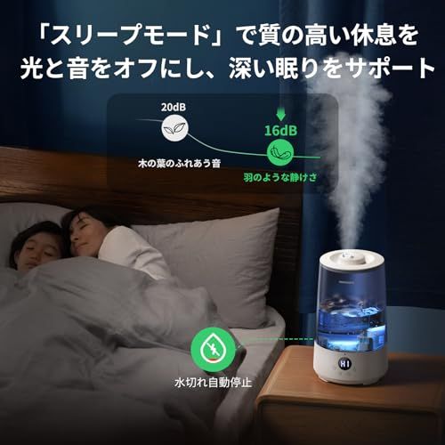 【超高速12分ミスト&全室対応ロングラン】 ? 12分※で乾燥不快感を解消!自社開発TurboMist TECHNOLOGY搭載の静音ターボファンが、肌や喉を素早く潤します。? 3.6L大容量タンク&最大34時間連続加湿で、リビングから寝室まで全屋をしっかりケア。給水の手間を軽減し、一晩中安心してお使いいただけます。? 適用面積約30※でワイドに加湿。360回転可能なミストノズルが部屋全体に均一拡散し、死角なく潤いを届けます。? 超低ノイズ&高拡散ミストを両立。静かな運転音で赤ちゃんや就寝中の使用にも最適。TurboMistがパワフルな加湿と快適な静音性を実現します。※使用環境により変動します。