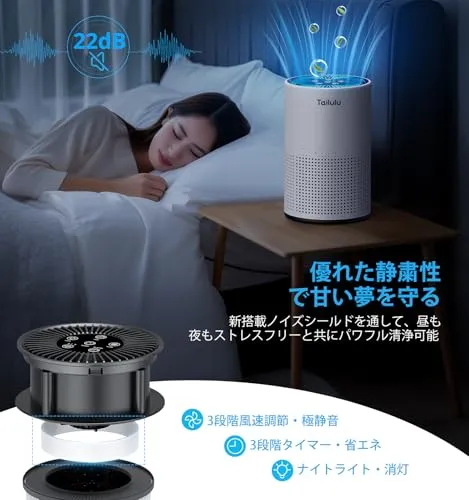 【360全方位強力浄化】Tailulu 空気清浄機は業界トップレベルの最新空気清浄技術により、360全方位の循環気流でハイグレードに吸引し、ハウスダストや花粉やダニなどのアレルゲン物質を取り除く効果が従来モデルより50%向上し、きれいかつハイクオリティな空気で、鼻のかゆみや鼻詰まり、鼻水、くしゃみ、アレルギー性鼻炎、喉の痛み、喘息などの症状が大幅に軽減できます。
