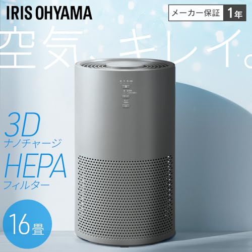 アイリスオーヤマ 空気清浄機 静音 小型 自動モード 省エネ ペット 脱臭 花粉 ホコリ PM2.5 集じん ウイルス アレルギー フィルター交換ランプ付き 16畳 AAP-S30C-H グレー/