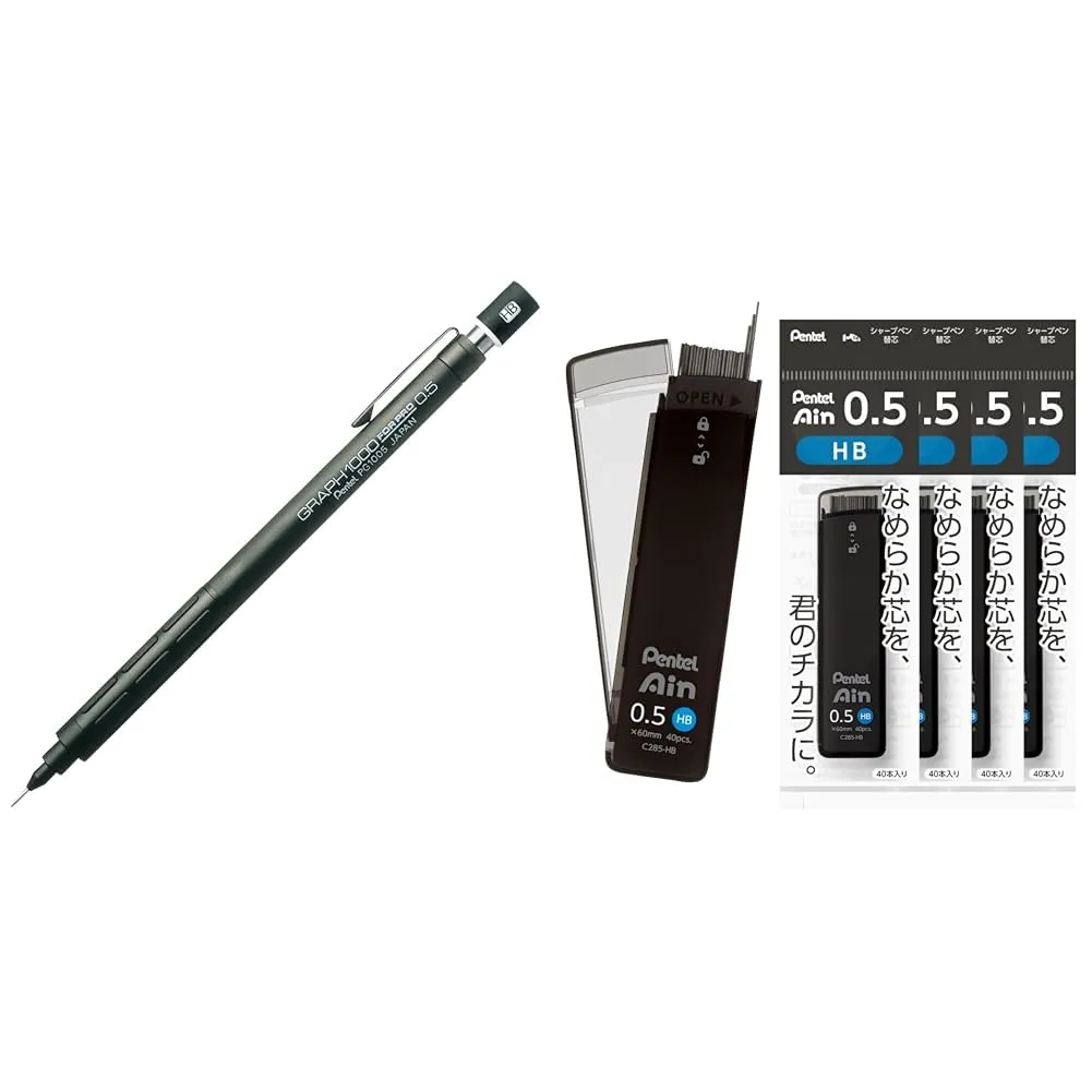 新品 【セット買い】ぺんてる シャープペン グラフ1000 フォープロ PG1005 0.5mm& シャープ芯 ぺんてるアイン 0.5mm HB 5個 XC285-HB