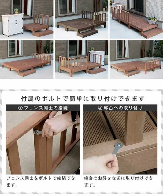 ウッドデッキ 縁台 専用フェンス コーナー用 高さ45cm 人工木 腐らない おしゃれ 頑丈 丈夫 柵 囲い 踏み台 ベンチ 濡れ縁 幅90cm 奥行5cm 縁側 掃き出し口 DIY ガーデン 庭 エクステリア ライトブラウン ダークブラウン シンプル お手入