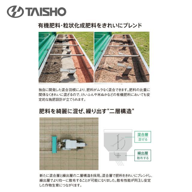 【配送方法・取付方法を選択ください】 有機肥料散布に最適な、ブレンドソワーが誕生。 鶏ふんや有機ペレットなどの有機肥料から化成肥料まで幅広い肥料を均一混合し、適正な散布ができます。 散布作業の低コスト化・省力化とともに安定的な土づくりから、大規模農業を支えます。
