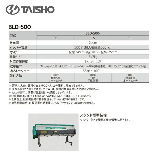[A1:日農工特殊A1型]!!エントリーで最大100%ポイントバック!! タイショー 肥料混合散布機 ブレンドソワー BLD-270- 散布幅1.6m ポッパー容量270L 無線リモコン 公道走行対応 適応トラクタ30-75PS