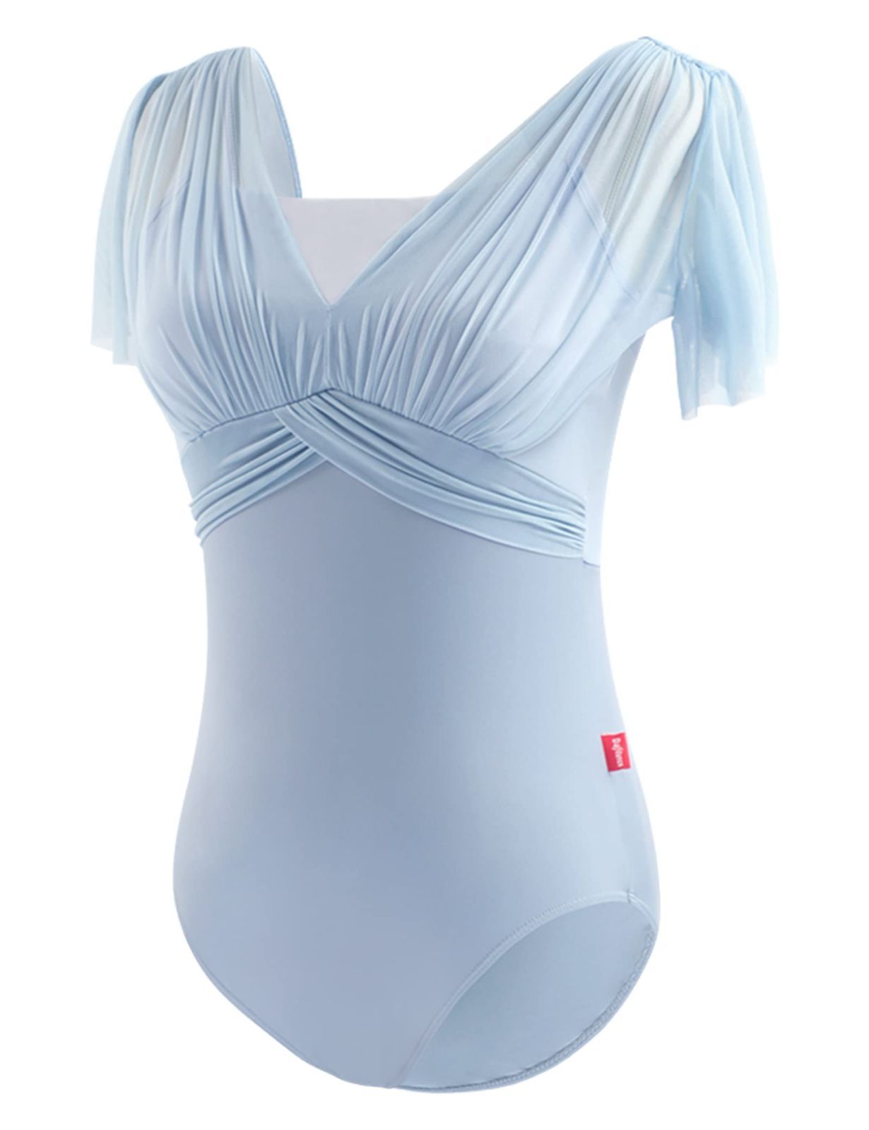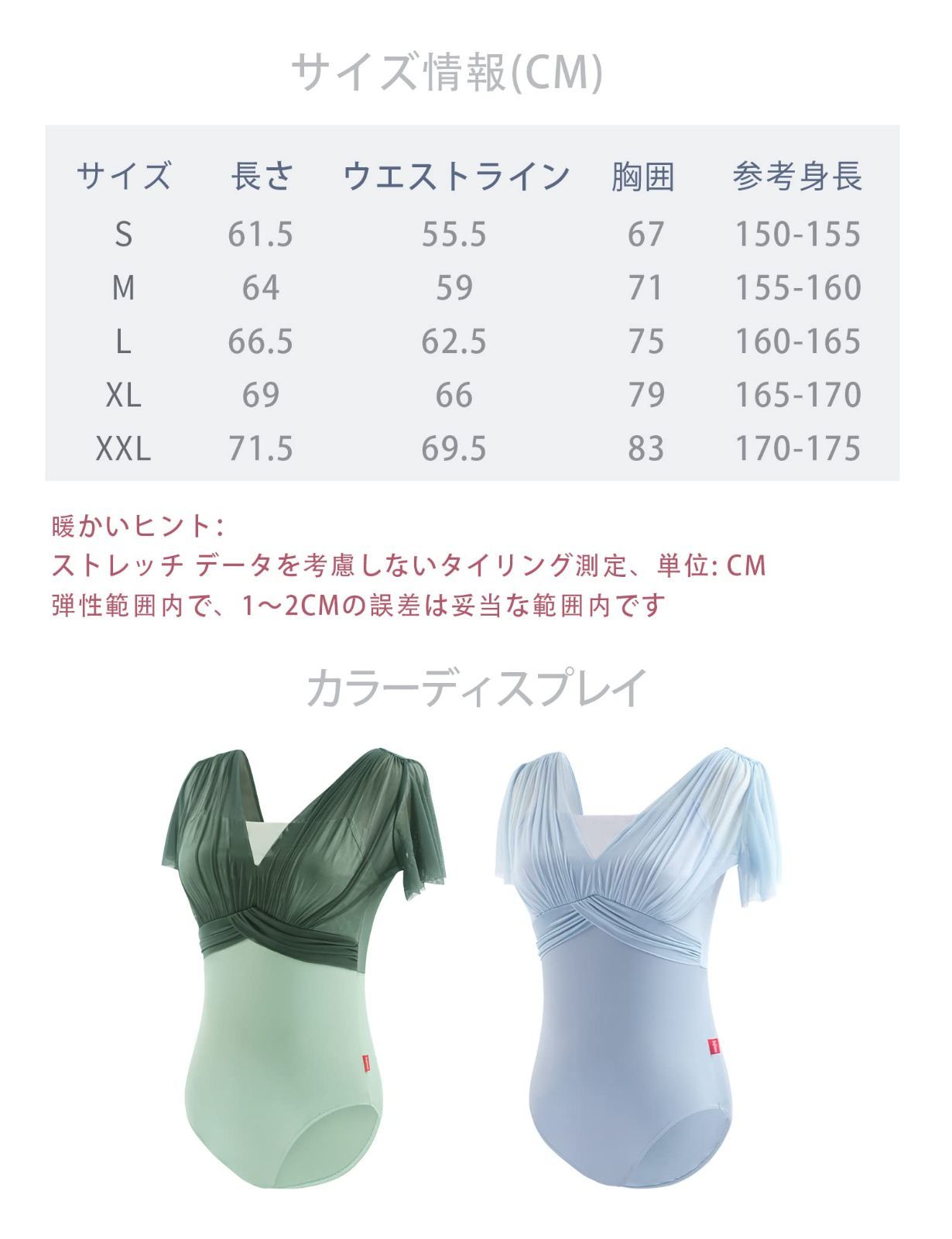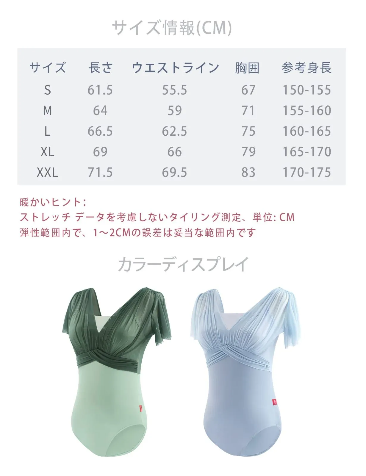 [Daydance] バレエ レオタード 大人 フリルスリーブ付きバレエレオタードメッシュ Vバックレス体操レオタード練習ボディスーツ 身長150-175cm