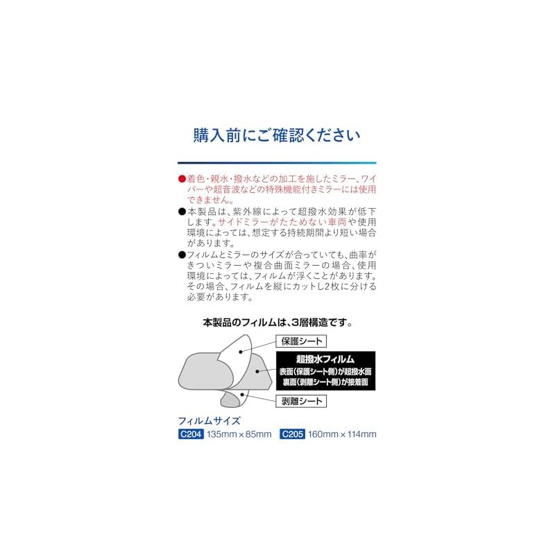 カーメイト(Carmate) 車用 超 撥水 フィルム サイドミラー 用【2枚入り】 長持ち 雨がつかない ゼロワイパー フィルムタイプ C204 1