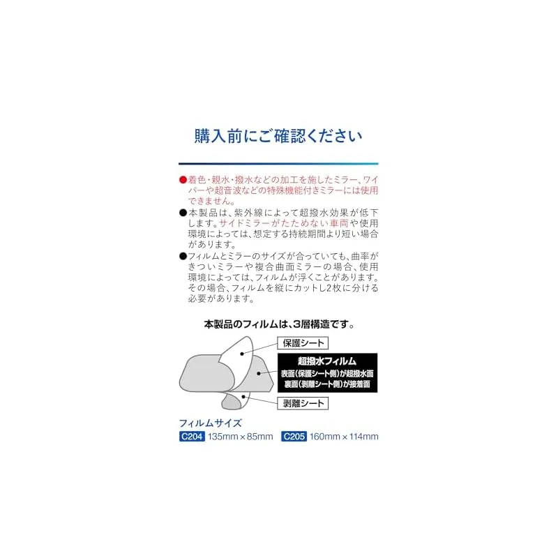 【商品詳細】 ブランド:カーメイト(Carmate) 商品種別:洗車・お手入れ用品 商品名:カーメイト(Carmate) 車用 超 撥水 フィルム サイドミラー 用