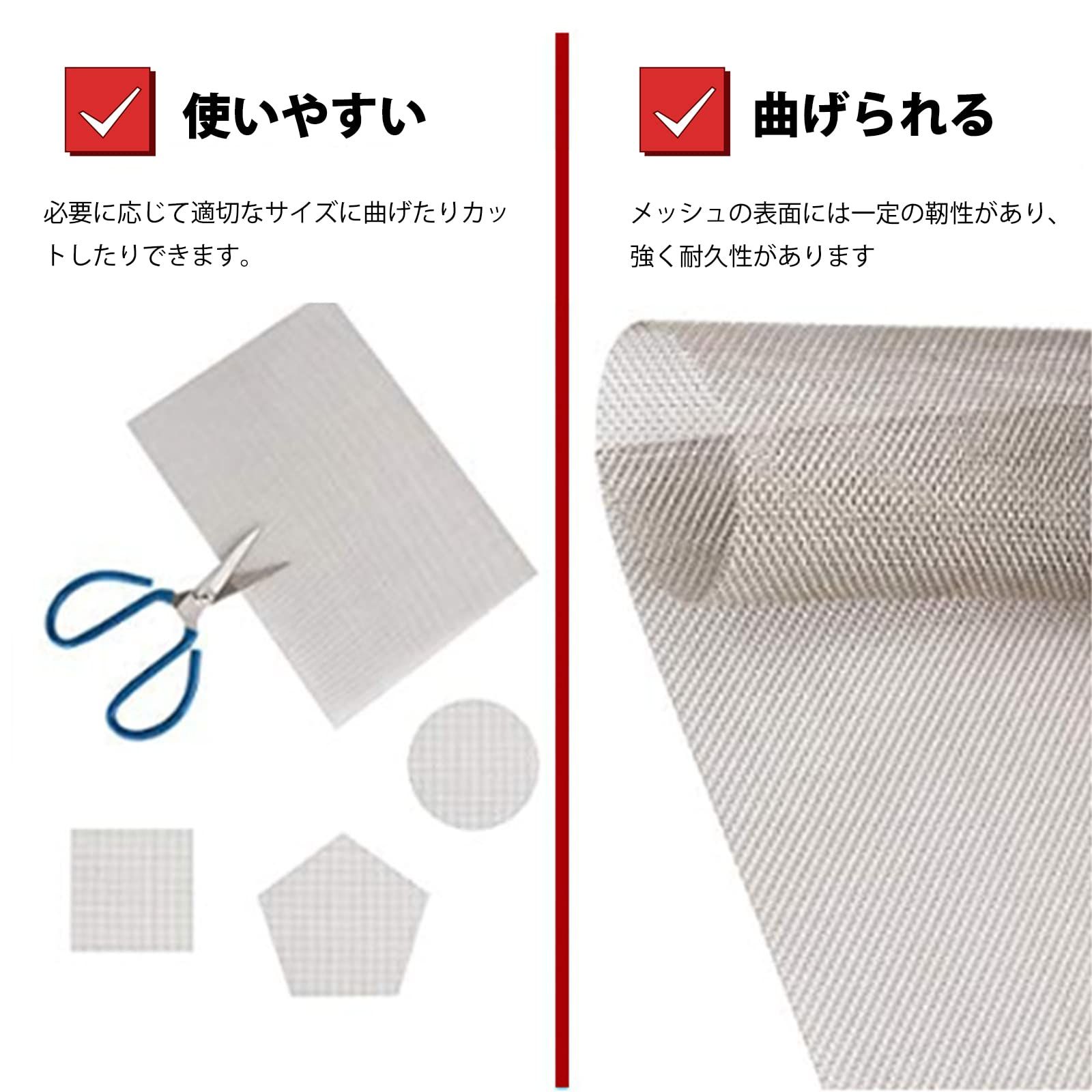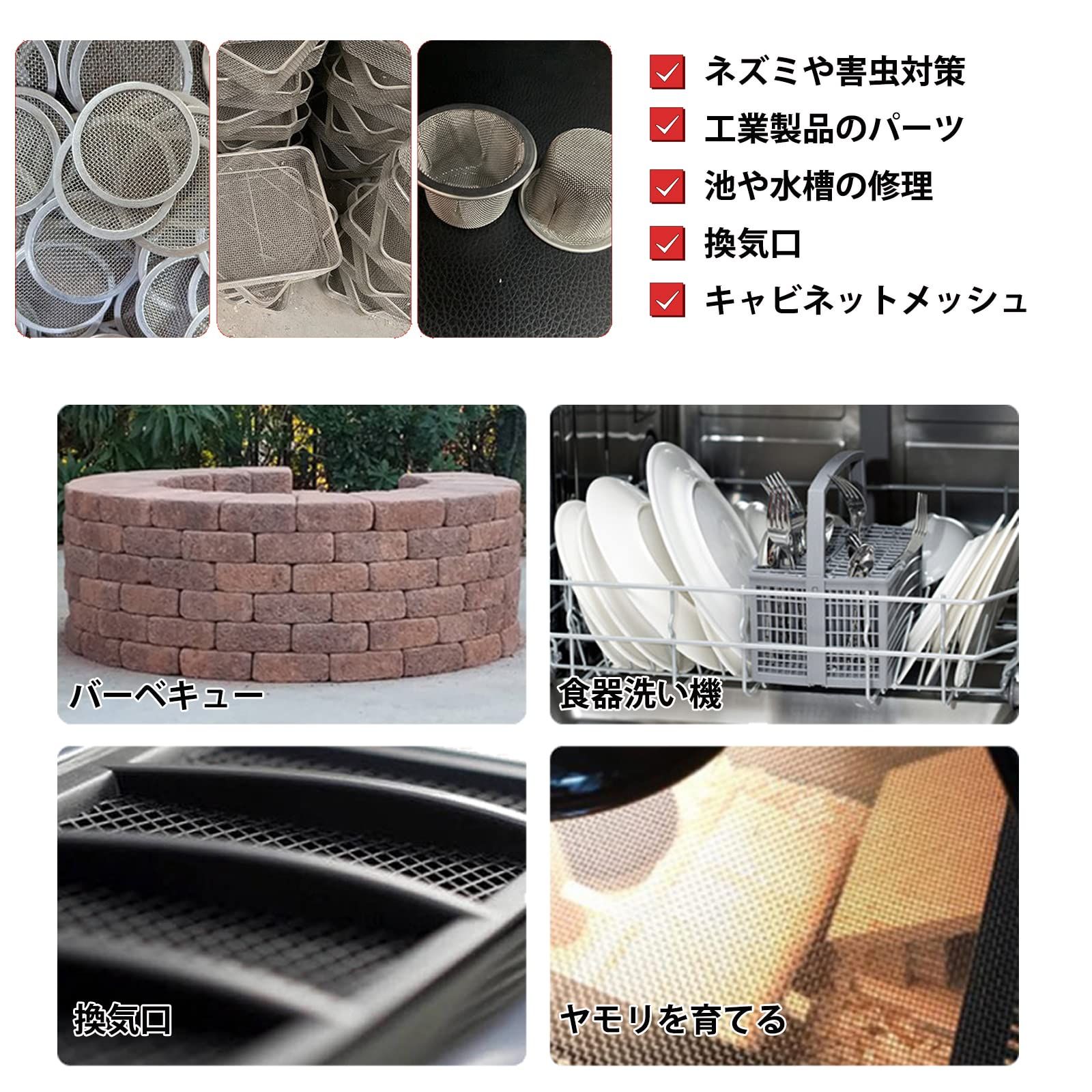 【幅広い用途】:ステンレスメッシュは防鼠金網、防虫網、キッチン濾過網、セキュリティメッシュ、建設メッシュ、基礎通気メッシュ、庭用メッシュ、暖炉スクリーンメッシュ、雨どいガードメッシュなどとしてご利用いただけます。