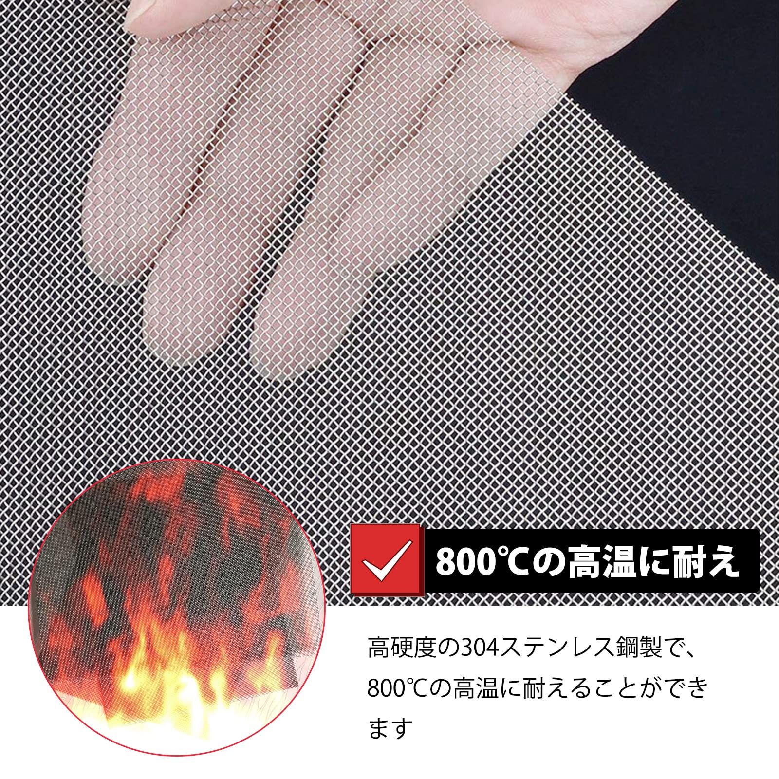 【高品質ステンレス製】 高硬度の304ステンレス製で作られ、金属メッシュの表面は滑らかで錆びにくく、800℃の高温にも耐えられ、耐高温性能が抜群です。 メッシュは細かくて均等に分散しており、耐食性に優れています。 長時間使用できます。