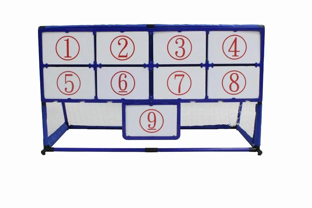 ゴールに9枚の的を取り付け、遊びながらキックの精度を身につけることができます。