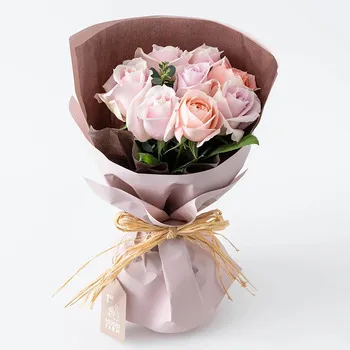 フレッシュなピンク系のバラのブーケ。