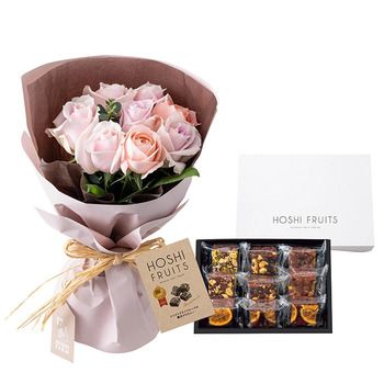 ホシファームのバラブーケとホシフルーツの贅沢ブラウニーのコンビギフト。