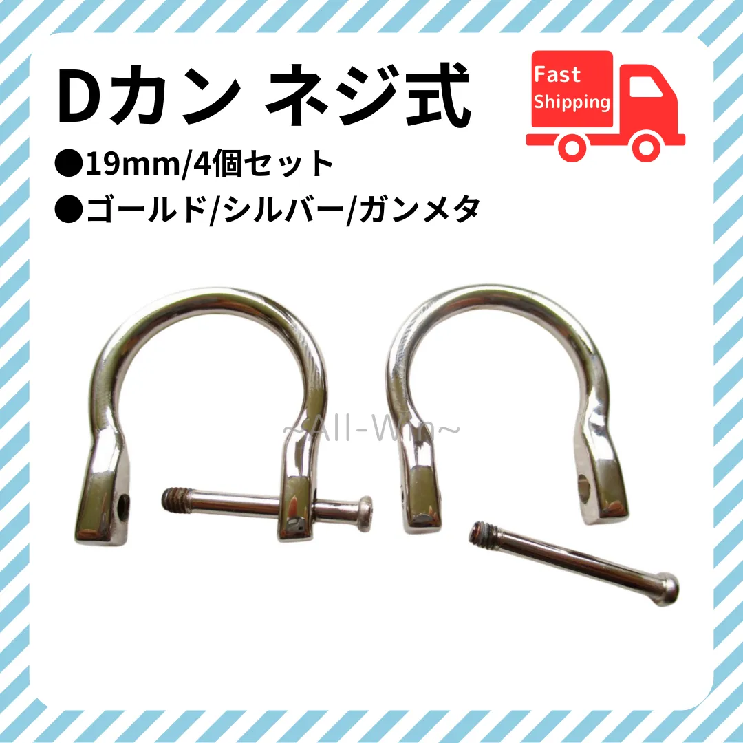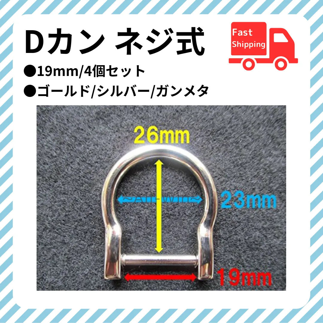 【商品説明】 ・Dカン ネジ式 19mm 4個入り ・カラー:ゴールド/シルバー/ガンメタ ・サイズ:19mm ・パッケージ、マニュアルの付属なし