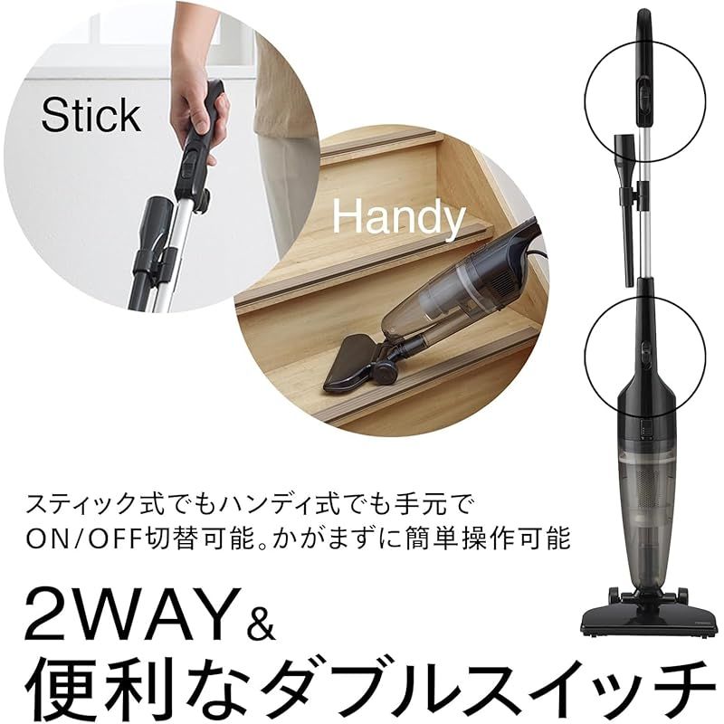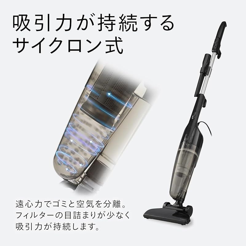 TWINBIRD(ツインバード) 掃除機 コード式 スティック ハンディクリーナー サイクロン式 自立可能 軽量 パワフル吸引 2WAY 新生活 ジェットブラック 黒 TC-E123JBK