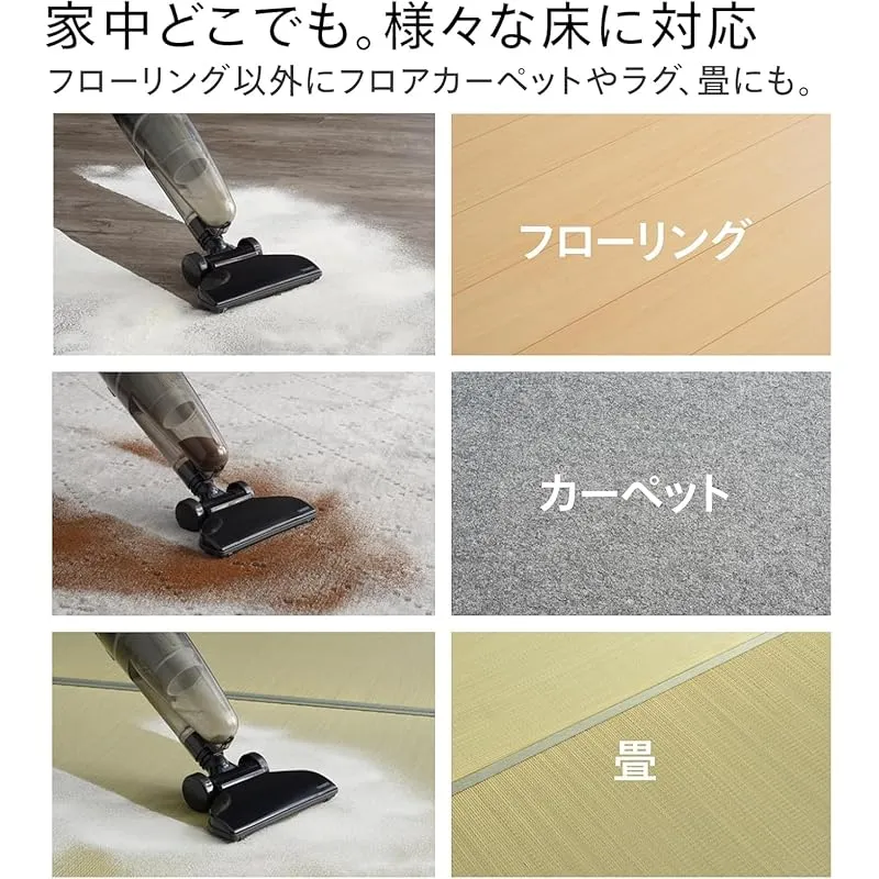 【家中どこでも。様々な床に対応】フローリングはもちろん、畳や毛足の長い絨毯に潜んだごみもしっかり吸い取ります。