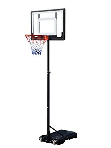 【商品詳細】組立サイズ:約83×46×190~245cm、リム(ゴールリング)サイズ:約38cm(内径)、バックボードサイズ:約83×60cm、対応ボールサイズ:7号球、高さ調整高目安(リムまでの高さ):約1.55m-2.10m、材質:スチール、PE、PVC、ベースタンクサイズ:奥行76×幅46×高さ12cm、商品重量:約9kg