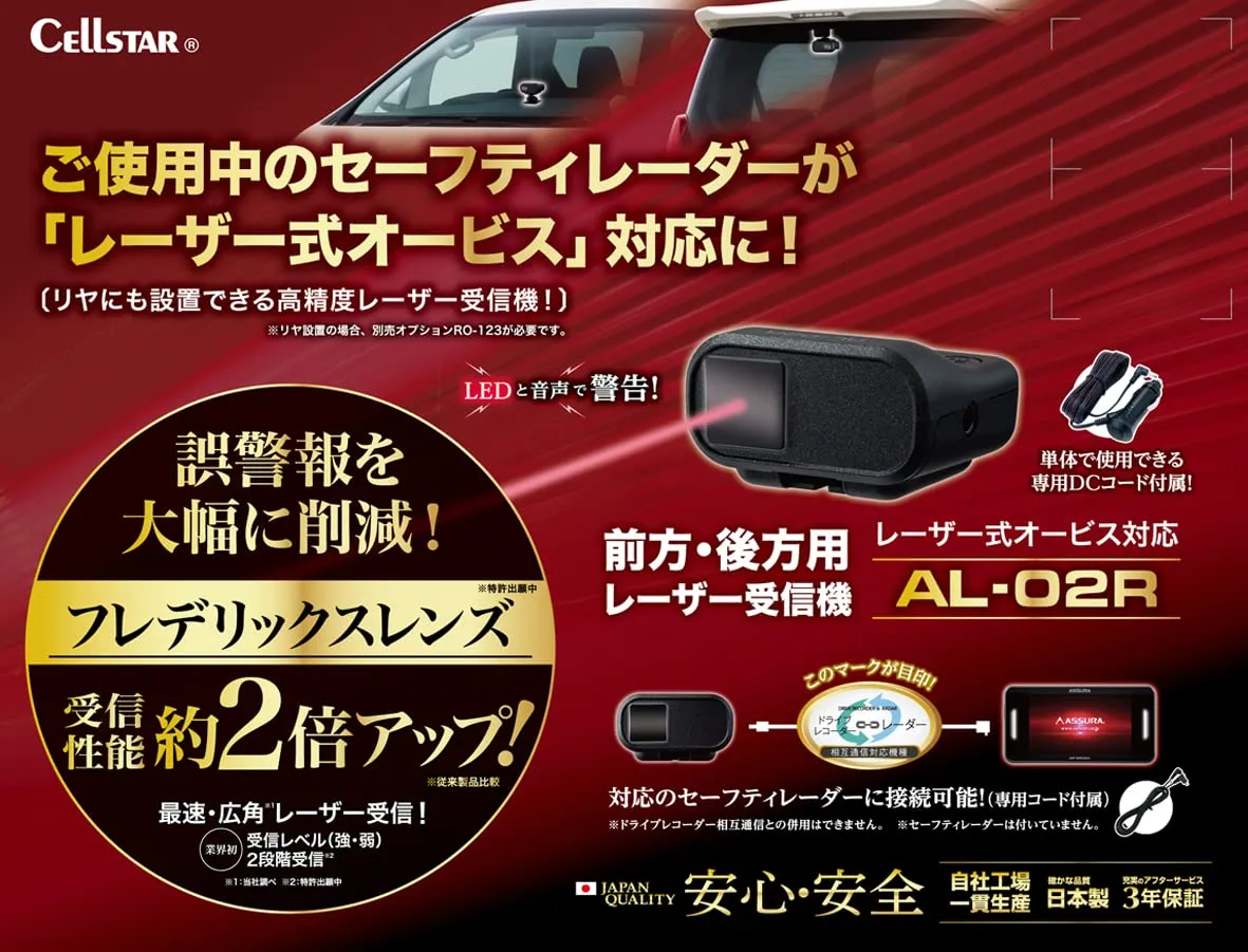 新品 セルスター レーザー受信機 AL-02R 一体型 1バンド フレデリックスレンズ セーフティレーダー接続可能 日本製 3年 CELLSTAR