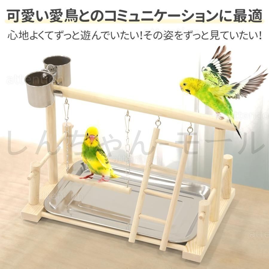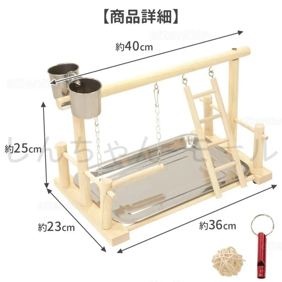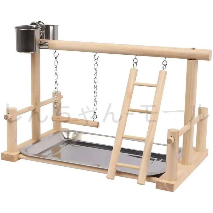 \u003c!-- description --\u003e室内用 小鳥用止まり木\u003cbr\u003e居心地よく楽しい仕様で小鳥のストレス緩和に。\u003cbr\u003e\u003cbr\u003e階段、ブランコ、マンチボール付きで飼い主さんも見ていて楽しい。\u003cbr\u003e木の上に設置できるエサ入れと水入れつき。\u003cbr\u003e\u003cbr\u003e工具不要、接着不要で組み立て出来てすぐに使えます。\u003cbr\u003e\u003cbr\u003e〔商品詳細〕\u003cbr\u003eサイズ:(約)底部幅36cm×奥行23cm×高さ25cm\u003cbr\u003e一番上の止まり木全長40cm\u003cbr\u003e素材:ステンレス鋼, 木材\u003cbr\u003e付属品:餌、水入れカップ、ステンレス受け皿、ミニマンチボール、組み立て用工具\u003cbr\u003e\u003cbr\u003e\u003cbr\u003eインテリア 鳥かご 鳥かご用止まり木 とりかご 仕切り オカメインコ 文鳥 ケージ ゲージ 持ち運び 移動 小型 鳥ケージ 小鳥 ブランコ エサ入れ ペット 野鳥 鳥用品 おすすめ
