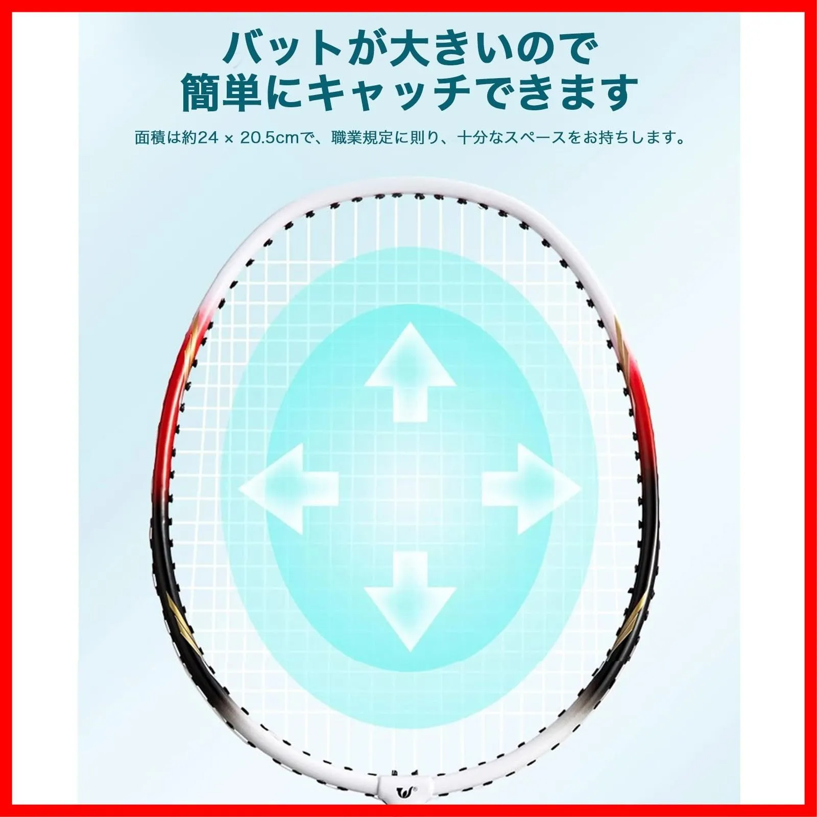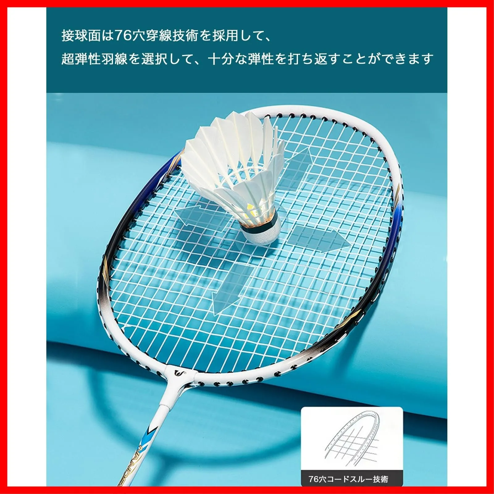 【76穴コードスルー技術】接球面は76穴穿線技術を採用して、超弾性羽線を選択して、十分な弾性を打ち返すことができます。面積は約24 × 20.5cmで、職業規定に則り、十分なスペースをお持ちします。