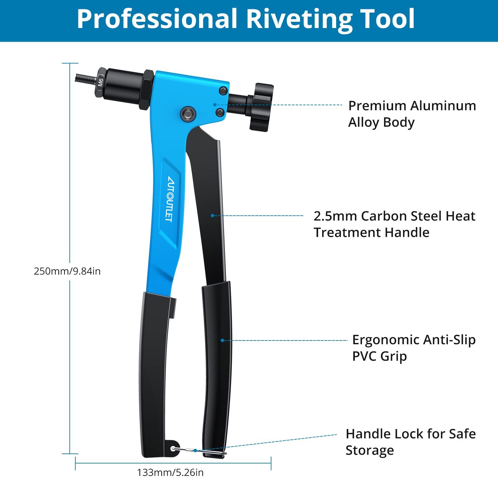 新品 AUTOUTLET ハンドリベッターセット、2合1のライベットナットツールとコアリベットツールのセット、メトリックM3-M6の心棒と2.4-4.8mmのリベットヘッドが付属(40個のライベットナットと40個のコアリベットが含まれています)