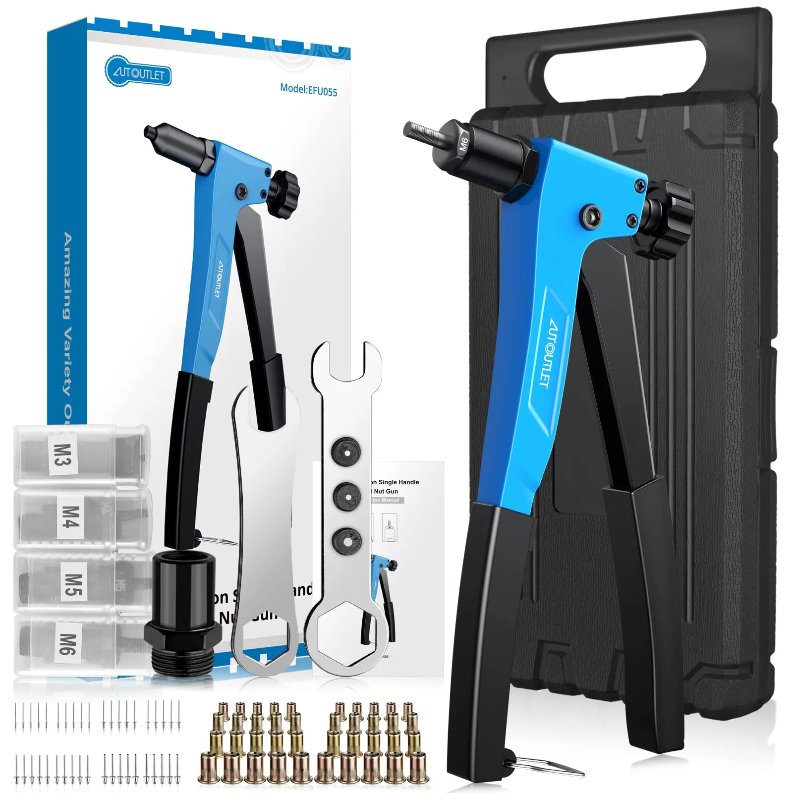 AUTOUTLET ハンドリベッターセット、2合1のライベットナットツールとコアリベットツールのセット、メトリックM3-M6の心棒と2.4-4.8mmのリベットヘッドが付属(40個のライベットナットと40個のコアリベットが含まれています)