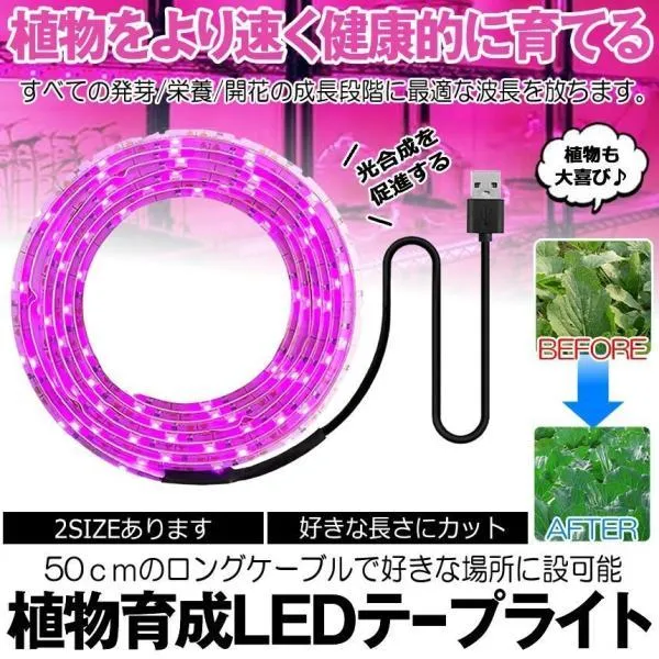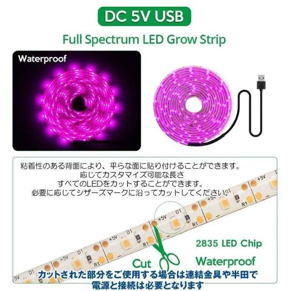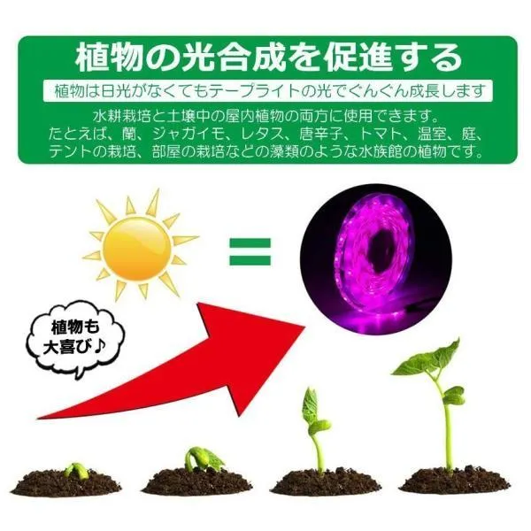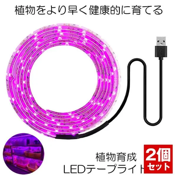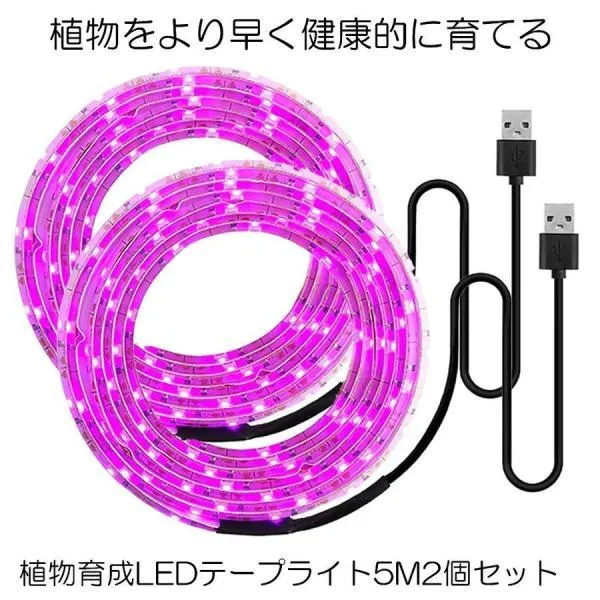 植物育成ライト 5m 2個セット LED植物用 LEDテープライト 植物成長促進 光合成 促進 防水 USB対応 LEDテープ 植物育成ランプ 家庭菜園 室内園芸 野菜 SODATU