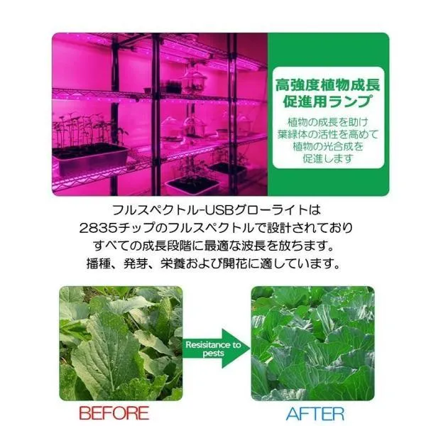 フルスペクトル-USBグローライトは2835チップのフルスペクトルで設計されており、
