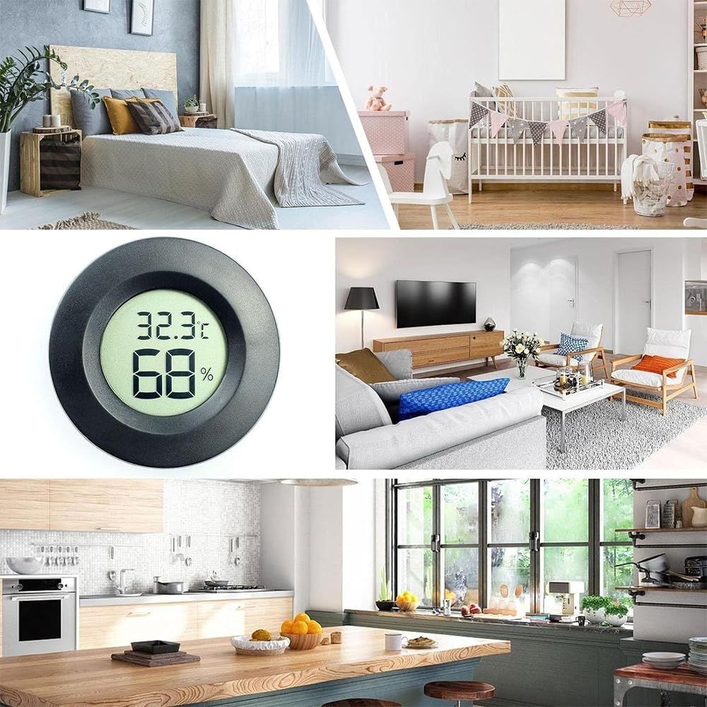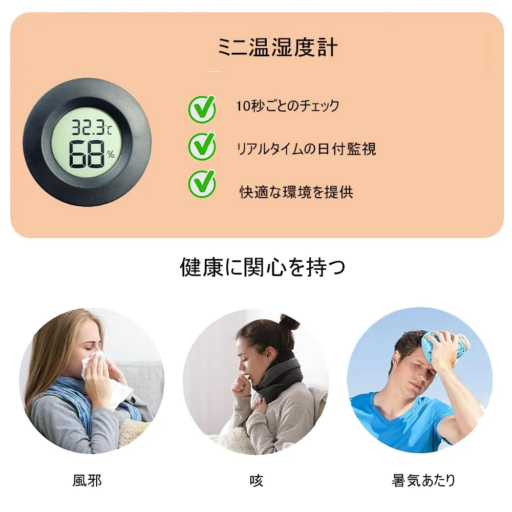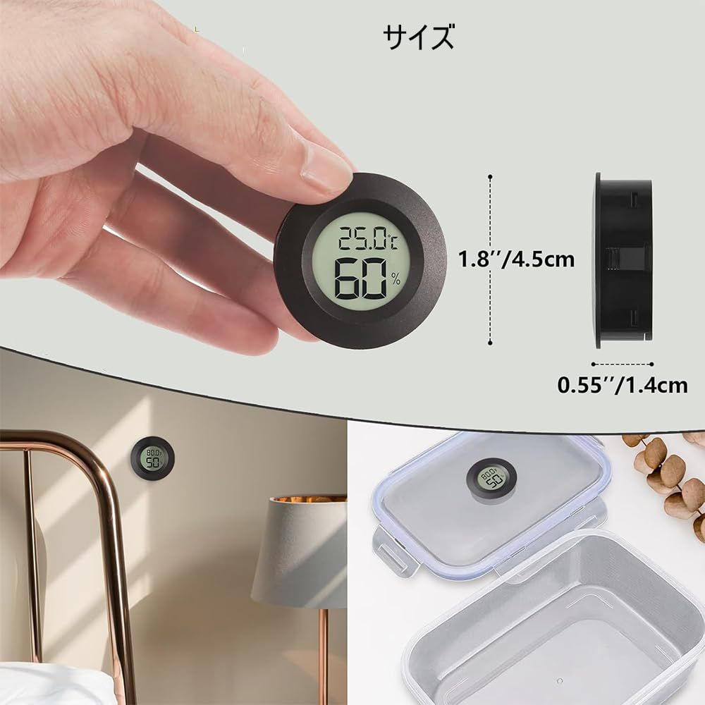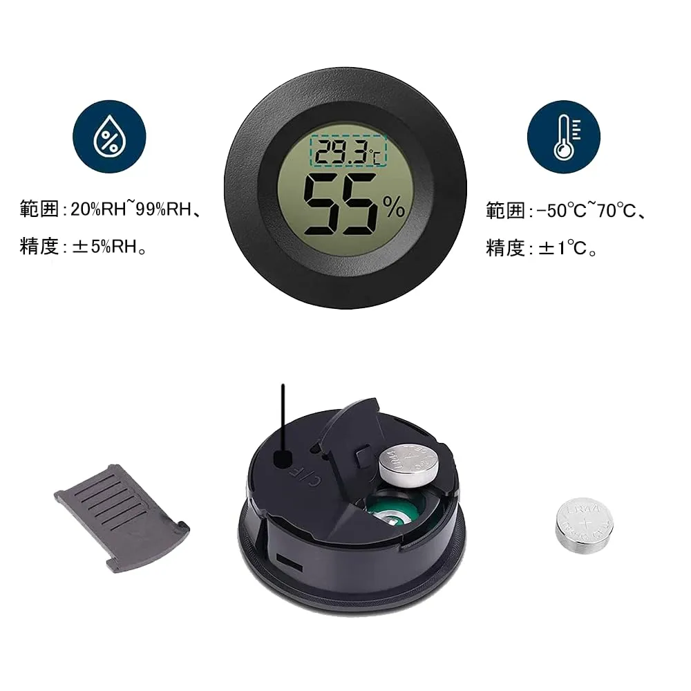 DFsucces ミニ温湿度計 2本セット 小型 温度計 湿度計 デジタル液晶スクリーン 爬虫類/家庭/飼育室/花屋部屋用 電池付き ブラック