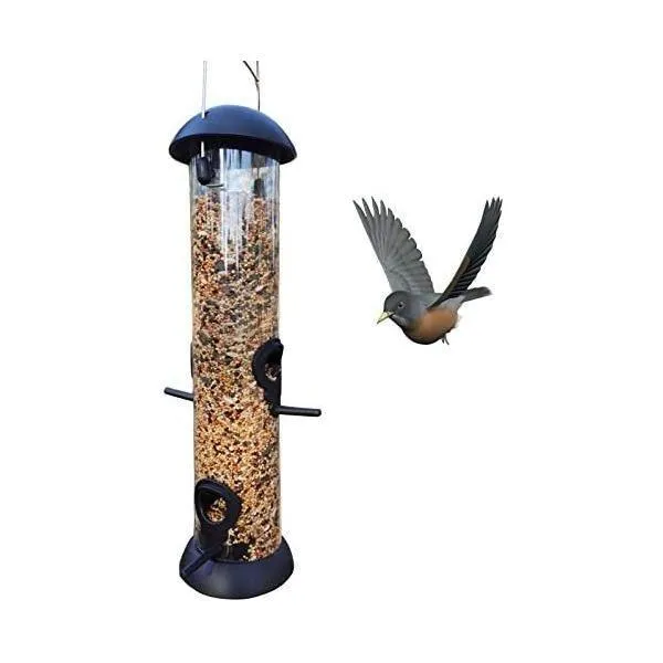 Emoi バードフィーダー 吊り下げ 野鳥小鳥 おしゃれ プラスチック 鳥の餌箱 グリッドチューブ付き 鳥 給餌器 スタンド (バードフィーダー)