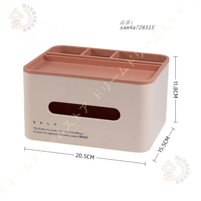 【品番】SAM4A728315 このティッシュボックスの上はスマホスタンドが付けます、両手を解放でき、映像を見ながら他のこともできます。 このティッシュボックスは、ティッシュだけでなく、エアコンのリモコンやスマートフォン、メイクブラシやハサミなど、日常的に使う道具をたくさん収納でき、とても便利な収納用品です。 ★商品仕様 サイズ(約):20.5*15.5*11.8CM (※製品の特性や測定方法によってサイズに誤差が生じる場合があります。) 材質:プラスチック カラー:グリーン、ホワイト、ピンク