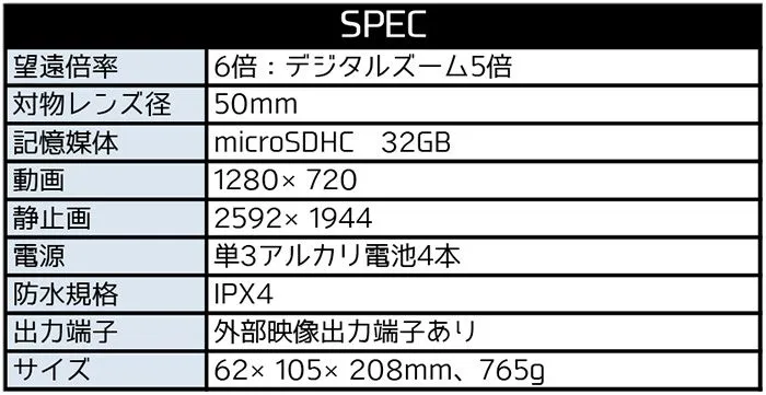 ◆録画機能搭載 ブッシュネル製品のエクイノクスZ6Rと同じく、マイクロSDカードに静止画と動画を保存することが可能。マイクロSDカードは最大32GBまで対応しています。※カードは別売りです。