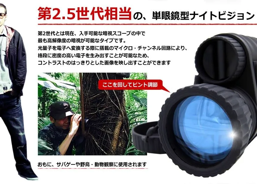 ◆第2世代 ナイトビジョンには第1、第2、第3世代と種類があり、現在、入手可能な暗視スコープの中で最も高解像度の暗視が可能なタイプです。