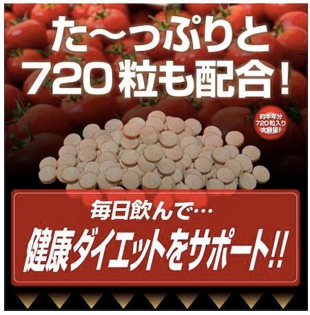 ■原材料:とまと乾燥粉末、水溶性食物繊維、還元麦芽糖水飴、 ラクトフェリン、黒酢エキス(緑豊酢)