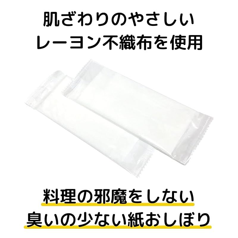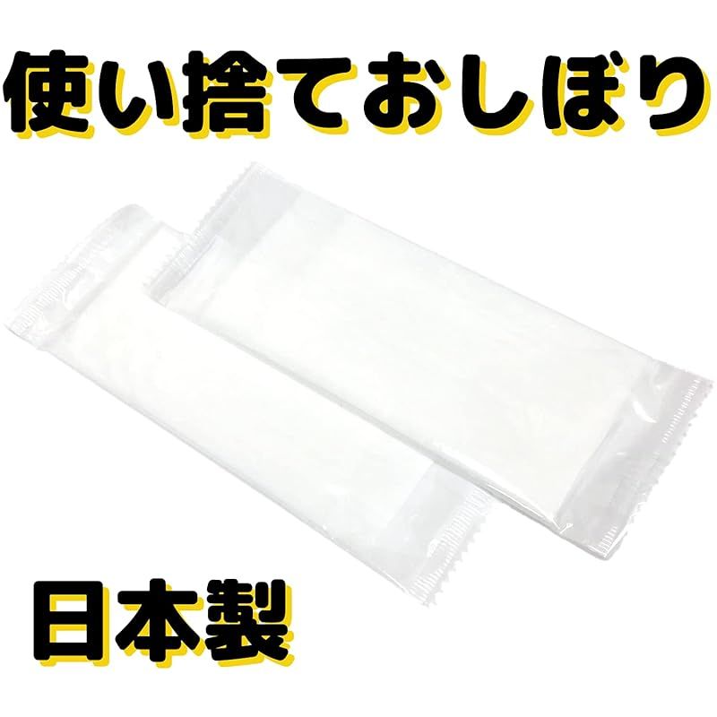 【商品概要】 ?安心安全、日本製の業務用使い捨ておしぼり500本入りです。 ?強くて手触りのよい、レーヨン不織布素材を使っています。 ?使い捨てタイプなので、おもてなし用のお手拭き、サッと取り出してウェットティッシュとしてお掃除用など、様々な場面で大活躍します。 ?製品サイズ:55×150mm 展開サイズ:180mm×215mm ?使用事例:レストラン、飲食店、カフェ、パーティー、屋外イベント、掃除、おてふき、来客用、学校給食、保育園、幼稚園