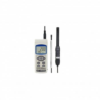 本体にセットしたSDカードに記録可能なデータロガー風速、風量計です。記録したデータはCSVファイルとしてExcel等のソフトに取り込み可能です。微風速の測定に適した熱線式の風速センサー、一定時間の排気、吸気量の測定が可能な風量測定機能を搭載しています。湿度や、空気が水滴になる温度を表す露点の測定が可能です。伸縮式の測定プローブで、手の届きにくい箇所の風速測定が可能です。