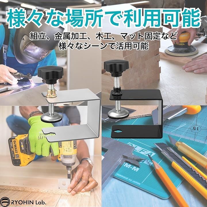 RYOHIN Lab. 良品ラボ クランプ c型クランプ デスク キャビネット 固定 作業 DIY 調節可 4個セット(シルバー)