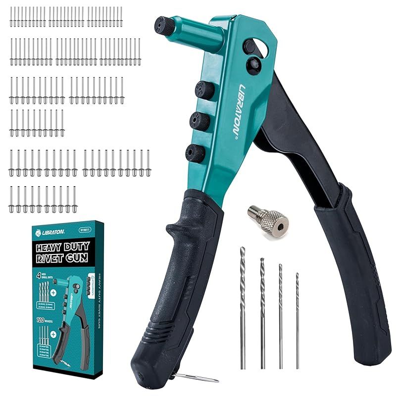 LIBRATON ハンドリベッターセット ブラインドリベット 120本付属 リベッター 工具 ドリルビット4本 ツールレスノーズピース4個 リベット打ち工具セット 0