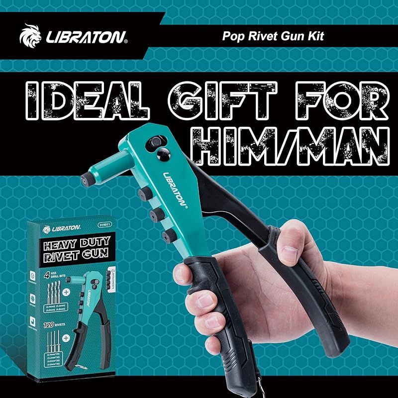 【商品詳細】 ブランド:LIBRATON 商品種別:ハンドリベッター 商品名:LIBRATON ハンドリベッターセット ブラインドリベット 120本付属 リベッター 工具 ドリルビット4本 ツールレスノーズピース4個 リベット打ち工具セット 製造元:LIBRATON 商品番号:919011