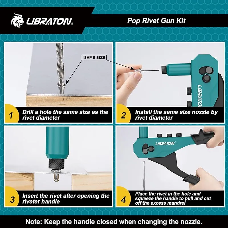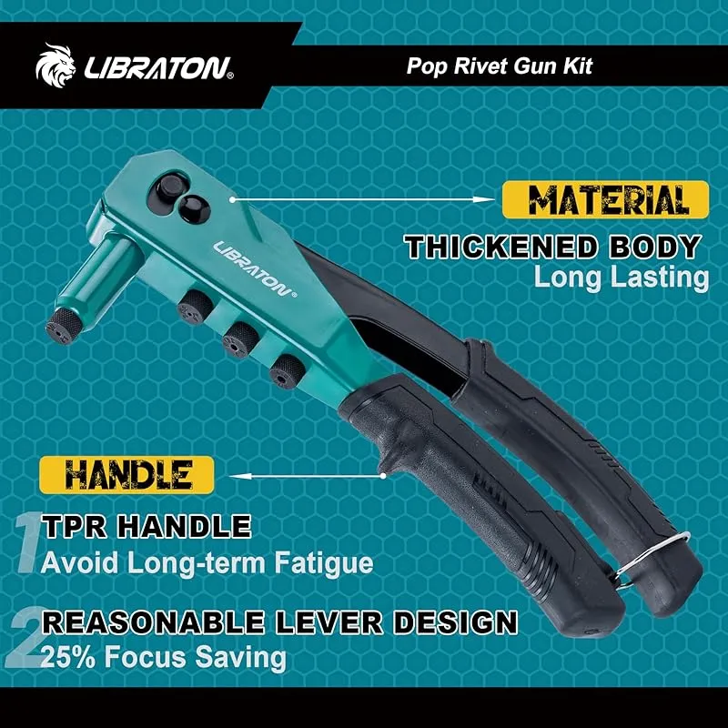 【幅広い用途】このプロ用ハンドリベッターセットは、金属加工、自動車修理、空調修理、キャンバス作業などの用途に最適です。Libratonリベットセットについてご質問がございましたら、お気軽に弊社までお問い合わせください。